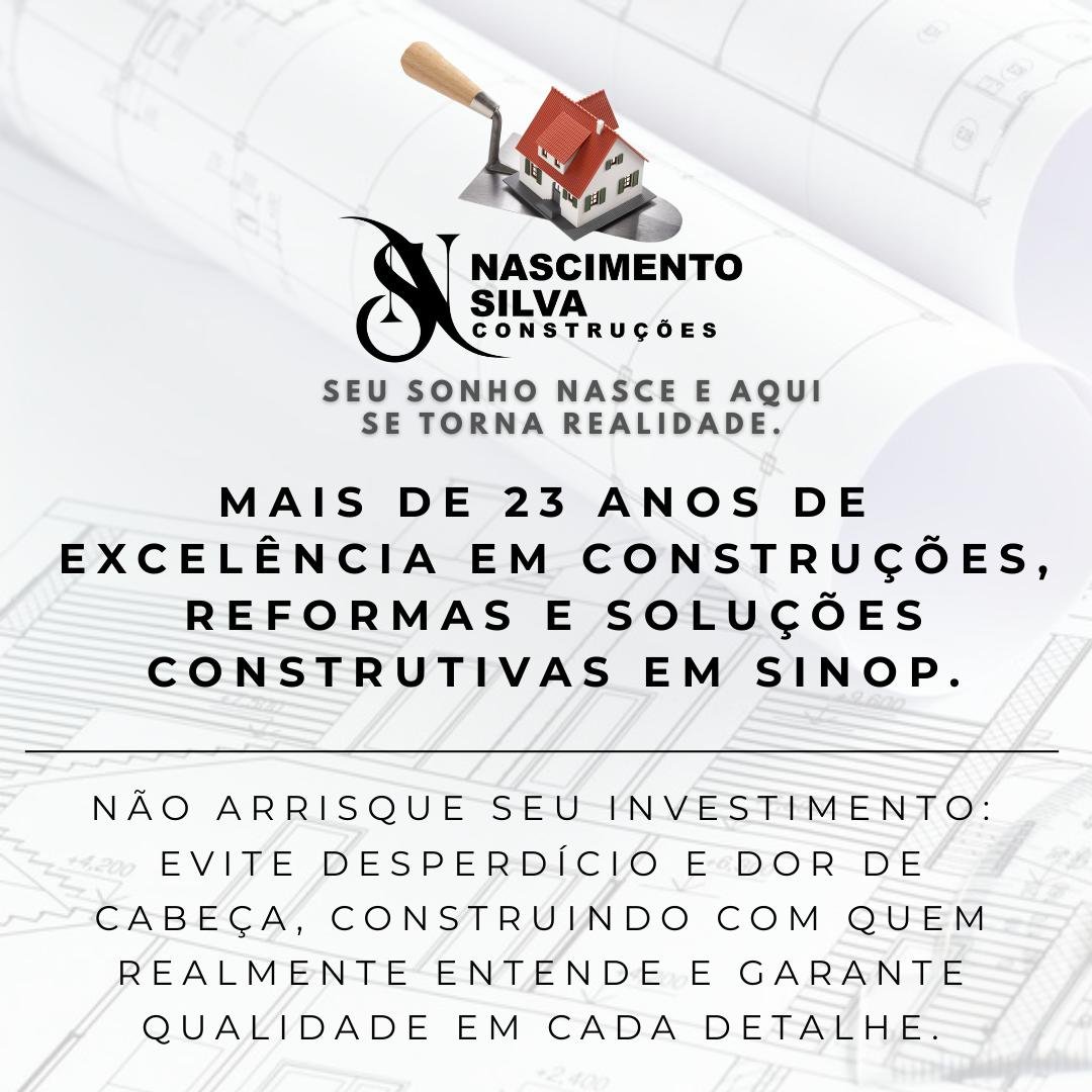 Na Nascimento Silva Construções, transformamos projetos em realidade com qualidade, responsabilidade e compromisso. Atuamos na construção de casas de alto padrão, residências compactas, salas comerciais, além de reformas e obras em geral na cidade.